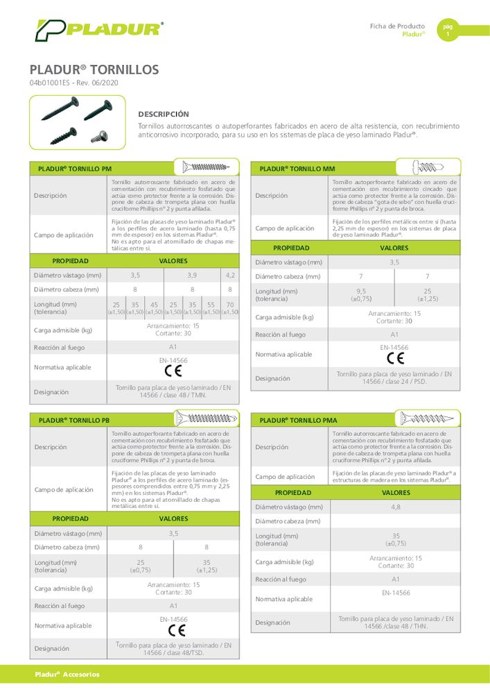 Tornillos Pladur