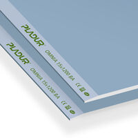 Placa de yeso laminado con alma de yeso natural y láminas de celulosa. Tipos I, D, F, R, H1 (EN 520:2004 +A1:2009), baja absorción de agua, alta dureza, resistencia al fuego, aislamiento acústico, alta capacidad de carga. Espesor 15 mm, ancho 1200 mm, bordes afinados.