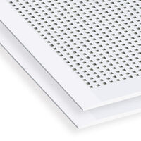 Placa de yeso laminado para techos, perforada con taladros cuadrados de 8 x 8 mm cada 18,75 mm. Tecnología Pladur® AIR, mejora la calidad del aire interior. Espesor 12,5 mm, ancho 1200 mm, longitud 2400 mm, bordes afinados.