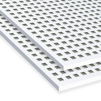 Placa de yeso laminado para techos registrables, perforada con taladros cuadrados de 12 x 12 mm cada 25 mm, acabado blanco. Tecnología Pladur® AIR, mejora la calidad del aire interior. Espesor 12,5 mm, dimensiones 600 x 600 mm.