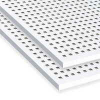 Placa de yeso laminado para techos registrables, perforada con taladros cuadrados de 8 x 8 mm cada 18,75 mm, acabado blanco. Tecnología Pladur® AIR, mejora la calidad del aire interior. Espesor 13 mm, dimensiones 600 x 600 mm.