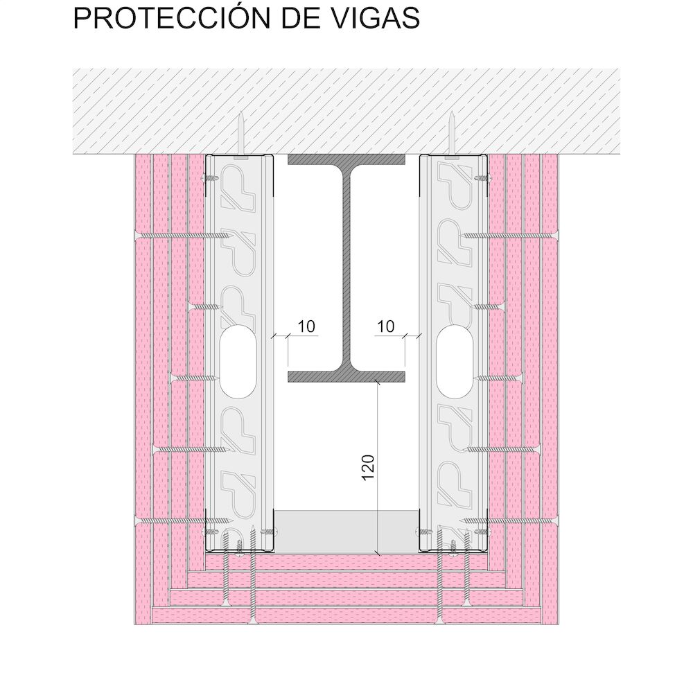 Protección de elementos de acero con sistemsa autoportantes Pladur® 48-35 + 4x12,5F