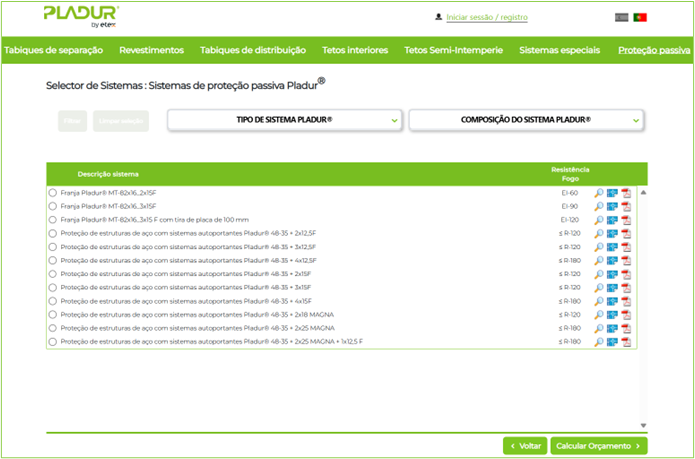 Para obter documentação específica, sob a forma de fichas técnicas de sistema ou orçamento para a sua obra ou projeto, dispomos do nosso Selector de Sistemas.
