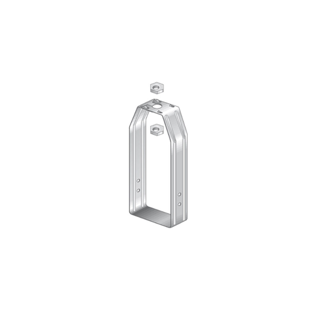 Peça de suspensão com abertura e fecho superior de encaixe e com broca para adaptar com porcas uma vareta roscada que serve para o seu apoio em qualquer tipo de placa. Utiliza-se para suspender os canais GL e montantes M-90( M-50).