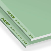 Placa de gesso laminado formada por uma alma de gesso 100% natural diretamente ligada a duas lâminas de celulose. Esta placa, pelas suas caraterísticas, está catalogada como tipo I, H1 de acordo com a norma EN-520:2004 +A1 2009. Este tipo de placas levam aditivos para reduzir a capacidade de absorção de água. Podem ser adequadas para aplicações especiais onde se necessitar de propriedades de absorção reduzidas para melhorar o rendimento da placa. Utiliza-se em aplicações onde for necessária uma maior dureza superficial. Além disso, a sua formulação reforçada e alta densidade proporcionam à superfície uma grande resistência a impactos e ao fogo. Carateriza-se por ter uma espessura nominal de 25 mm e por possuir uma largura nominal de 900 mm. Esta placa tem os bordos longitudinais revestidos a cartão e configurados como Bordos Afinados (BA).