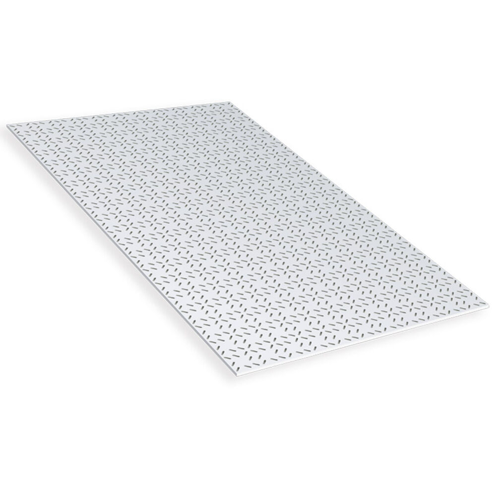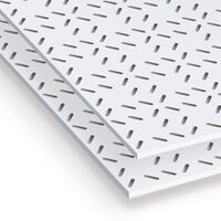 Placa de gesso laminado para tetos formada por uma alma de gesso 100% natural diretamente ligada a duas lâminas de celulose. Incorporam na face à vista perfurações lineares de 6x36mm e 6x25mm com disposição oblíqua. O padrão repete-se em intervalos de 10 cm. Carateriza-se por ter uma espessura nominal de 13 mm e por possuir uma largura nominal de 1200 mm e uma longitude nominal de 2400 mm. Esta placa tem os bordos transversais e longitudinaisbiselados (BV).