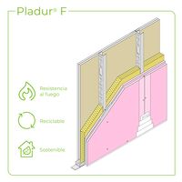 Tabique formado por duas placas Pladur® F de 12,5 mm de espessura, aparafudas a cada lado de uma estrutura de aço galvanizado de 70 mm de largura, composta por montantes Pladur® XL (elementos verticais) de abas de 45 mm e canais Pladur® XL (elementos horizontais), dando uma largura total de tabique terminado de 120 mm. Parte proporcional de materiais Pladur®: parafusos, pastas, fitas de juntas, juntas estanques /acústicas no seu perímetro, etc., assim como fixações para canais ao chão e ao teto. Totalmente acabado com Nível de Qualidade de Acabamento 1 (Q1) para acabamentos de cerâmica, laminados, etc. Também com Nível 2 (Q2), Nível 3 (Q3), Nível 4 (Q4), de acordo com a superfície de acabamento (a definir em projeto). Alma da estrutura Pladur® preenchida na sua totalidade com lã mineral de 60 a 70 mm de espessura. Montagem de acordo com as recomendações técnicas Pladur® e norma UNE 102043.