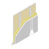 Tabique formado por uma placa interna Pladur® N de 12,5 mm de espessura mais uma placa externa Pladur® SOLIDTEX de 12,5 mm de espessura, aparafudas a cada lado de uma estrutura de aço galvanizado de 48 mm de largura, composta por montantes Pladur® (elementos verticais) de abas de 35 mm e canais Pladur® (elementos horizontais), dando uma largura total de tabique terminado de 98 mm. Parte proporcional de materiais Pladur®: parafusos, pastas, fitas de juntas, juntas estanques /acústicas no seu perímetro, etc., assim como fixações para canais ao chão e ao teto. Totalmente acabado com Nível de Qualidade de Acabamento 1 (Q1) para acabamentos de cerâmica, laminados, etc. Também com Nível 2 (Q2), Nível 3 (Q3), Nível 4 (Q4), de acordo com a superfície de acabamento (a definir em projeto). Alma da estrutura Pladur® preenchida na sua totalidade com lã mineral de 40 a 50 mm de espessura. Montagem de acordo com as recomendações técnicas Pladur® e norma UNE 102043.
